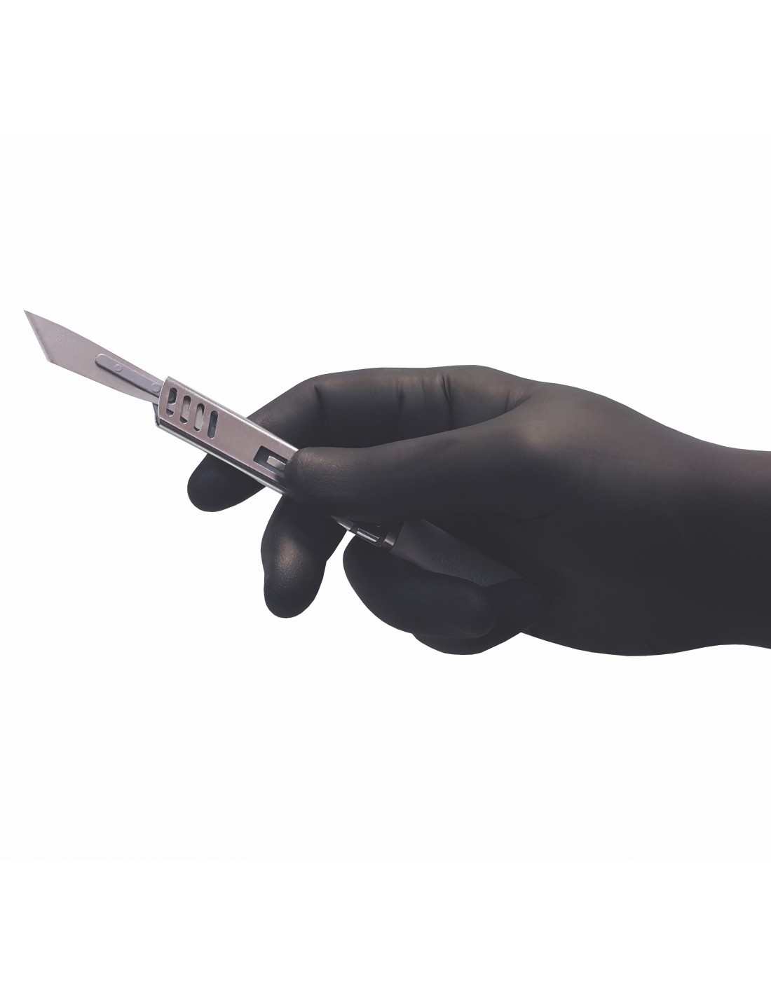 Jednorazowe, nitrylowe rękawice diagnostyczne z rolowanym mankietem. Produkt cechuje chlorowana powierzchnia wewnętrzna. Wyrób niesterylny i bezpudrowy, zgodny z normami technicznymi, dopuszczony do kontaktu z żywnością.
