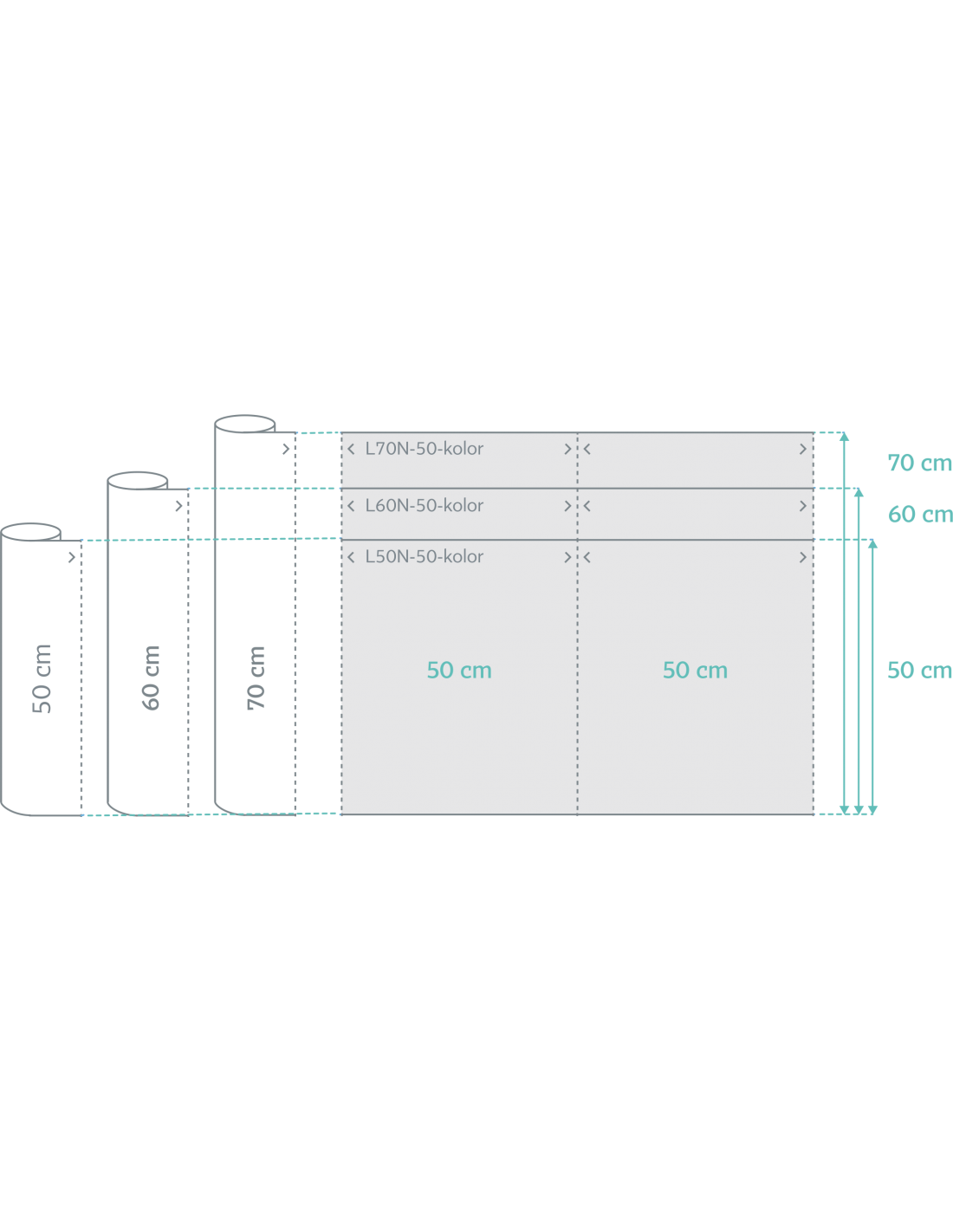 Bibułowe rolki medyczne mają 50 m długości, a co 50 cm umieszczone są nacięcia do łatwego odrywania podkładu. Podkład składa się z dwóch warstw delikatnej bibułki, a specjalne wytłoczenie sprawia, że jest miękki i przyjemny w dotyku.
