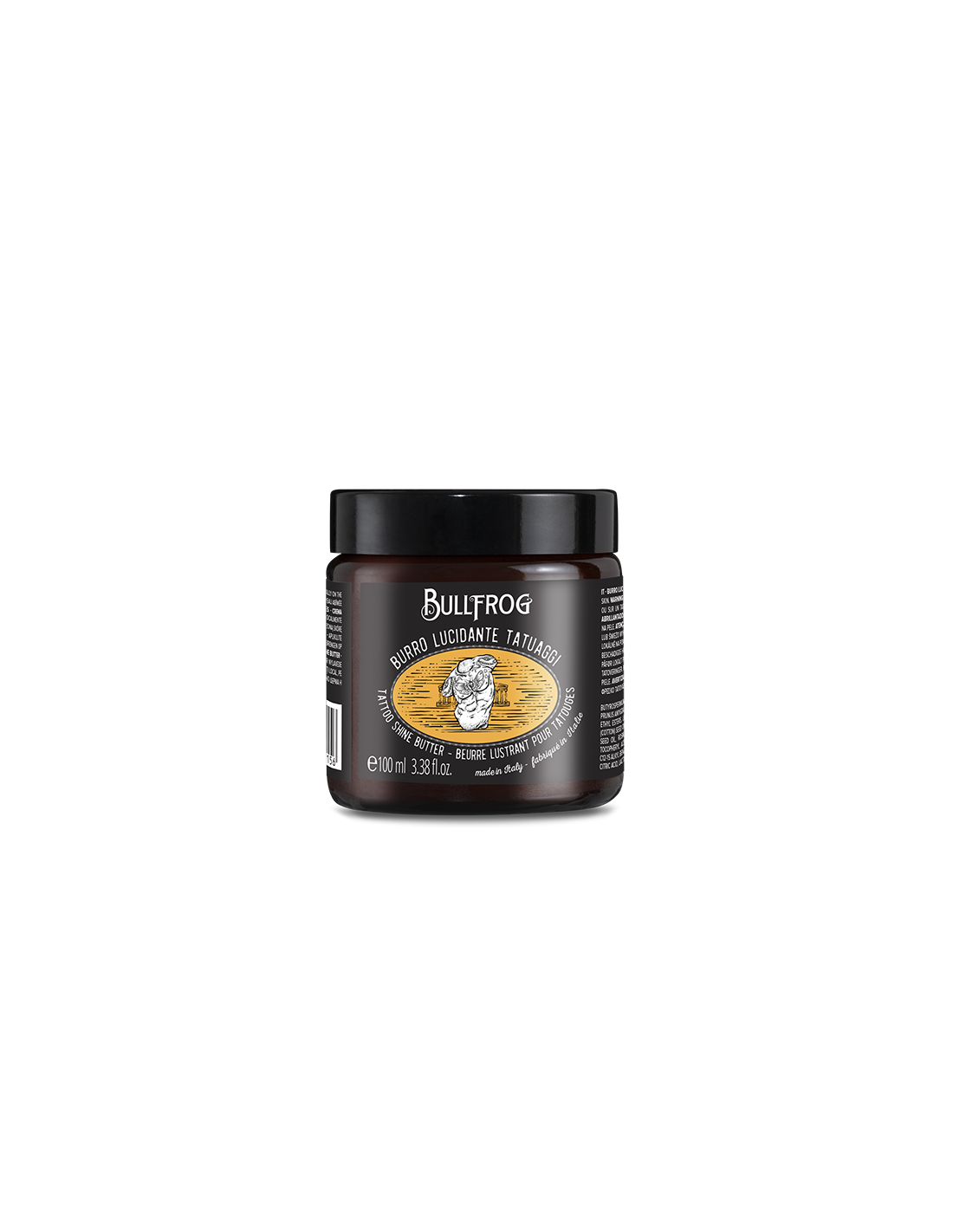 Tattoo Shine Butter od Bullfrog to roślinny balsam z 50% zawartością masła Shea, który podkreśla połysk, nawilża i chroni każdy tatuaż, wydobywając jego kolory i elastyczność. Subtelny zapach piżma z nutą talku dodaje luksusowego doświadczenia przy każdym użyciu.