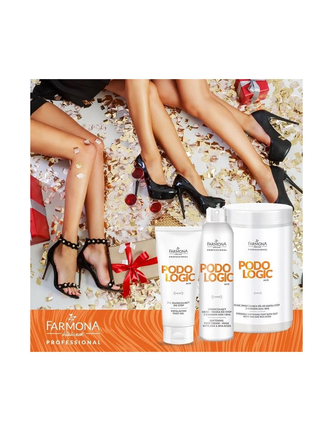 Farmona Podologic Acid Sól do kąpieli stóp jest idealna do stosowania przed zabiegami podologicznymi i pedicure. Produkt jest szczególnie polecany dla osób borykających się z problemami takimi jak nadmierne rogowacenie naskórka, zgrubienia, bardzo sucha, szorstka i zniszczona skóra stóp. Dzięki swoim właściwościom, sól doskonale przygotowuje skórę do dalszych zabiegów pielęgnacyjnych.