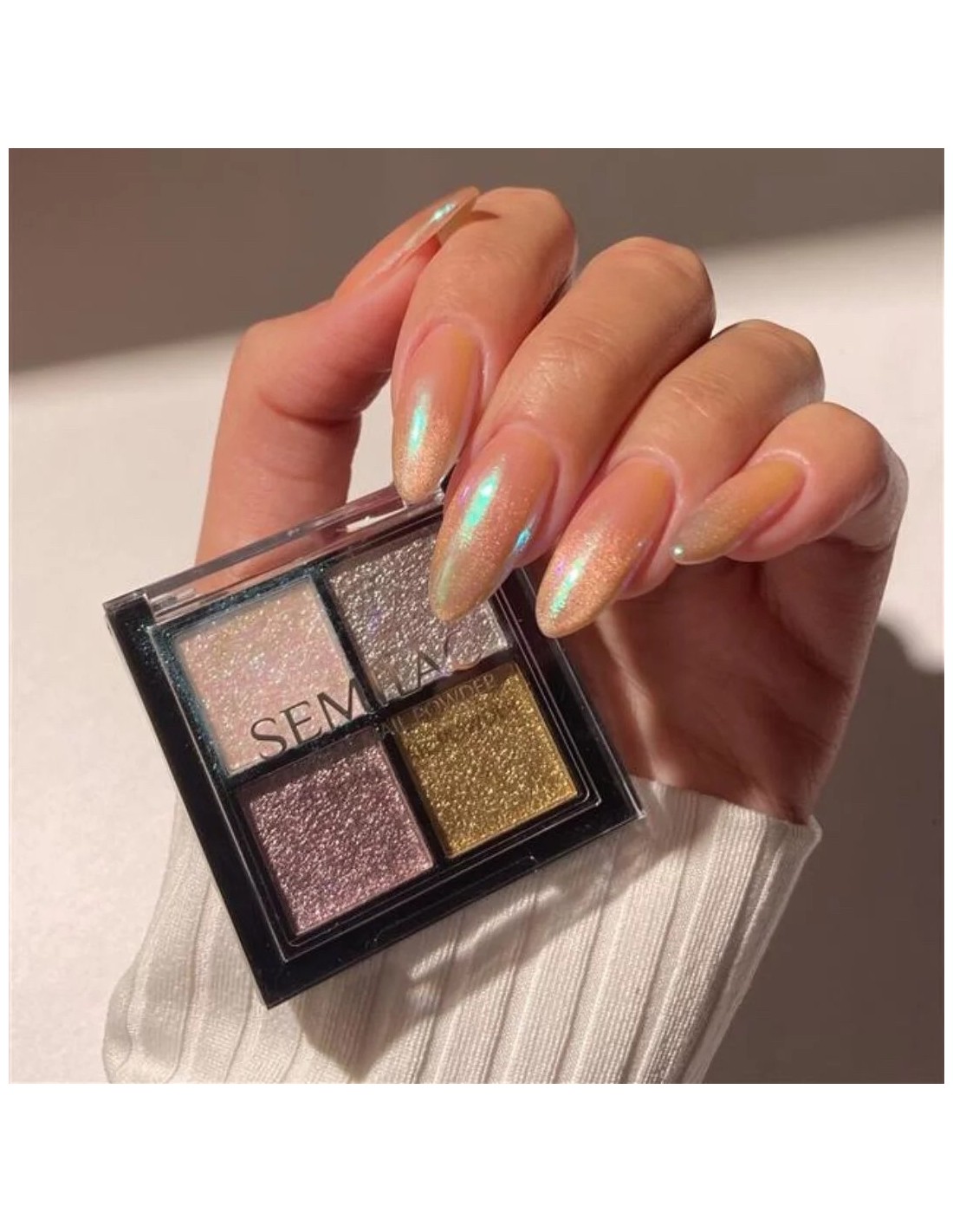 Semilac Trendylicious to wyjątkowa paletka prasowanych pyłków, która w kilka sekund przemienia Twój manicure w prawdziwe dzieło sztuki. Cztery intensywnie błyszczące odcienie – biel, srebro, różowe złoto i złoto – zostały zamknięte w eleganckiej, kompaktowej palecie, dzięki czemu możesz cieszyć się perfekcyjnym blaskiem zawsze i wszędzie, bez rozsypywania czy bałaganu.
