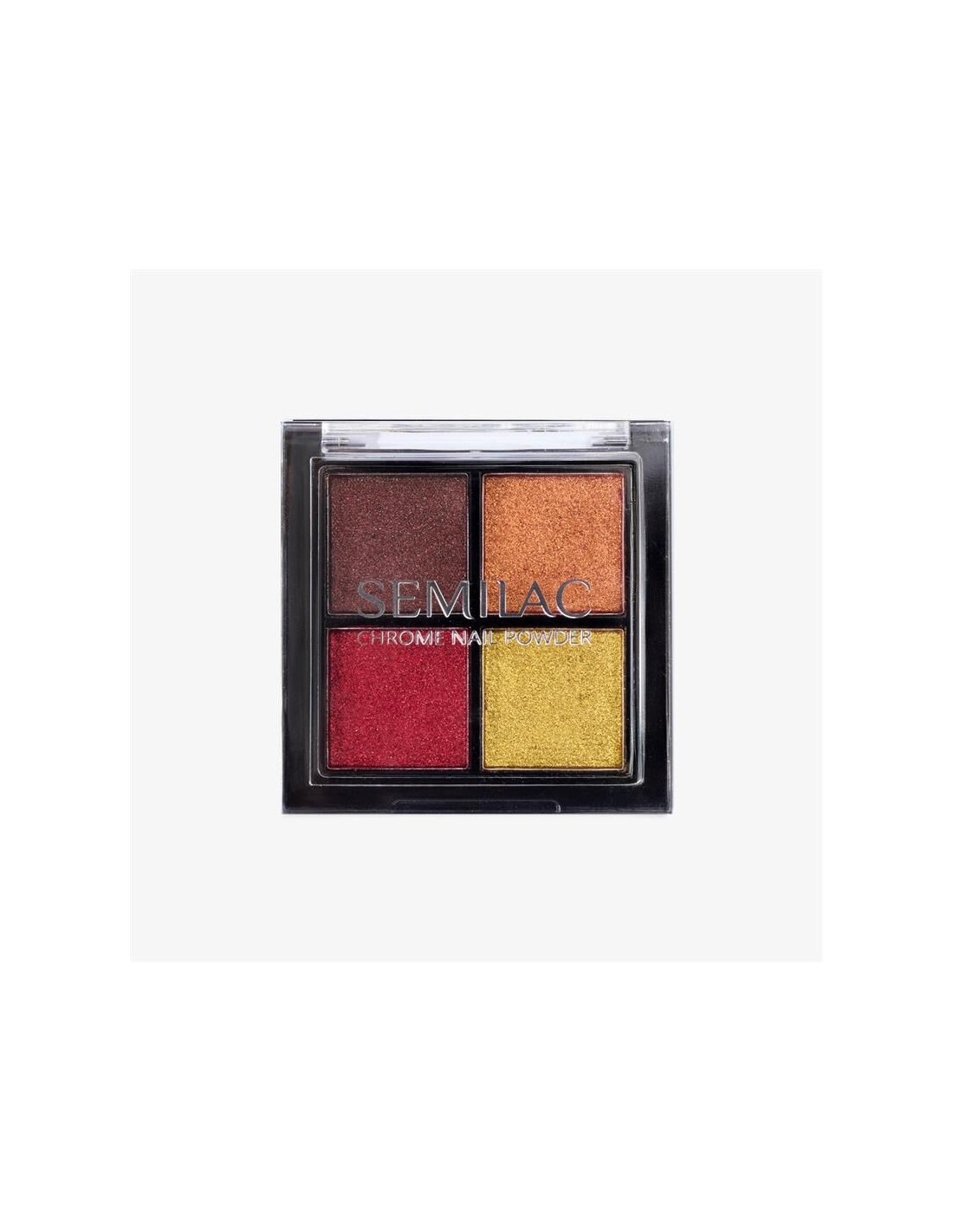 Semilac Trendylicious to nowoczesna paletka prasowanych pyłków metalicznych, która nadaje każdej stylizacji efekt luksusowego, płynnego metalu. Cztery intensywne, wielowymiarowe odcienie – brąz, czerwień, złoto i pomarańcz – zostały zamknięte w eleganckiej, kompaktowej formie, gwarantującej wygodną aplikację bez rozsypywania i strat produktu.