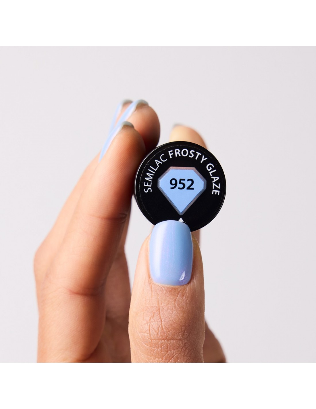 Semilac 952 Frosty Glaze – zanurz się w chłodnym blasku zimy i odkryj, jak subtelny błękit może stać się Twoim nowym ulubionym odcieniem glamour.