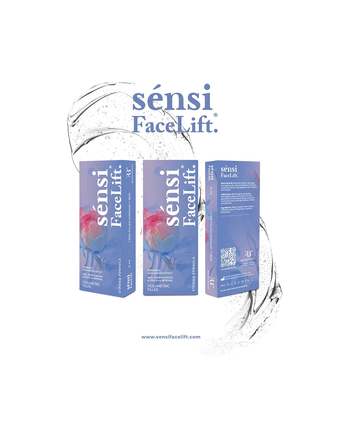 Sensi Face Lift to innowacyjny hydrożel do iniekcji, który łączy wysoko i nisko cząsteczkowy kwas hialuronowy, trehalozę oraz polinukleotydy, oferując intensywne nawilżenie, objętość oraz poprawę elastyczności skóry. Efekty zabiegu są widoczne natychmiast i utrzymują się przez wiele tygodni, a preparat można stosować na twarz, szyję, dekolt, dłonie i kolana.