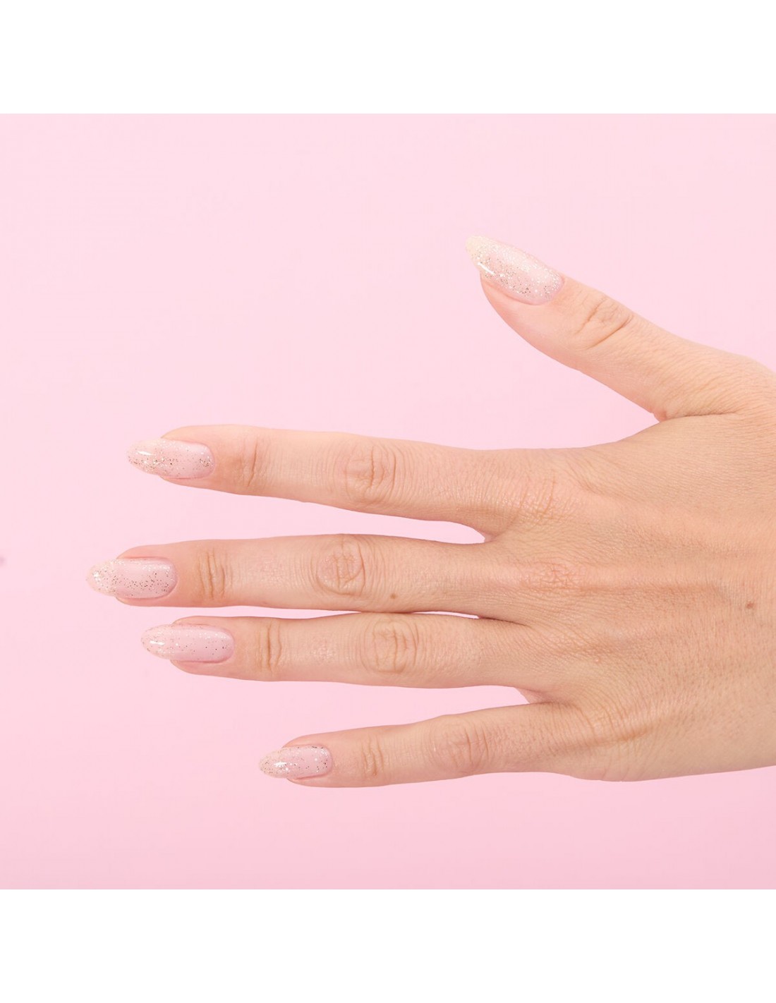 Old Money delikatnie rozświetla manicure, nadając mu efekt złotego muśnięcia – od subtelnej elegancji w połączeniu z odcieniami nude po efektowny glamour na tle ciemnych barw. W zestawieniu z kolorami jelly tworzy wyjątkowy efekt glass nails ze świetlistą, luksusową poświatą.